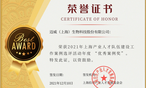 Honorary Qualification | Mabwell awarded as "Excellent Case" of Shanghai Industrial Talent Team Construction 2021