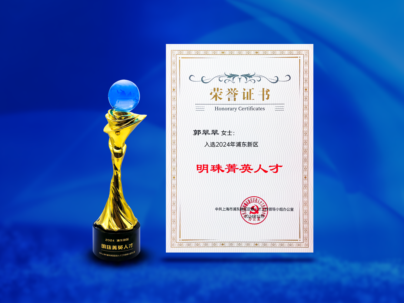 银河集团官网 生物郭翠翠博士入选 2024 浦东新区“明珠菁英人才”